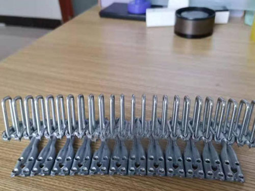 皮带输送机的配件中皮带扣包括了机头等,在进行装订时就如大倾角的输送带产品的固定端,接头和固定端都是一起进行连接的,转轴和输送机机头之间要留有一定的缝隙。